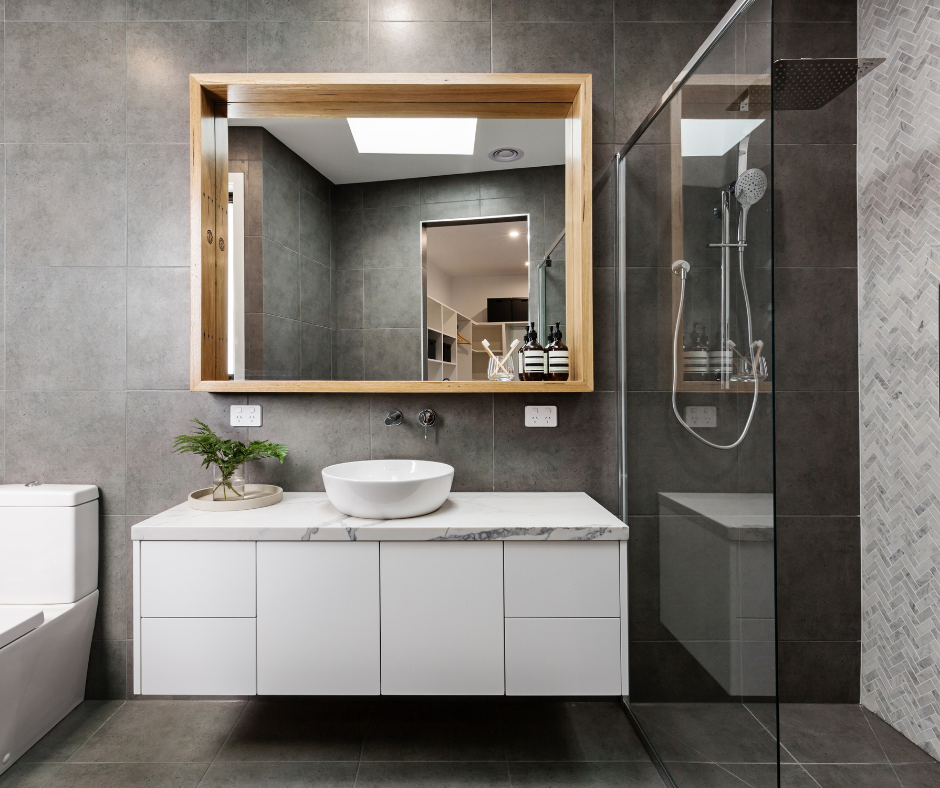 - nowoczesne, minimalistyczne meble łazienkowe,